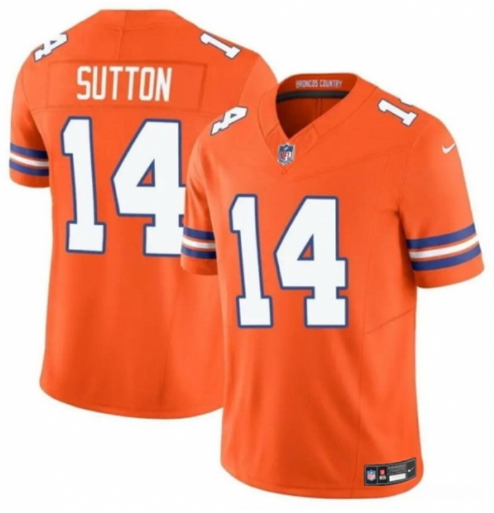 Toddler Denver Broncos Sutton #14 Orange Stitched NFL jersey