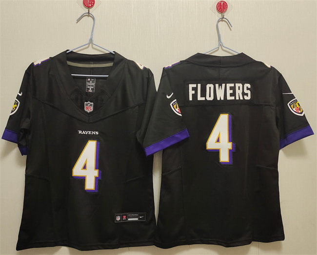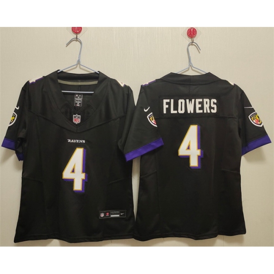 Home>NFL>Baltimore Ravens>Women>Women Baltimore Ravens 4 Zay Flowers Black Vapor Football Jersey