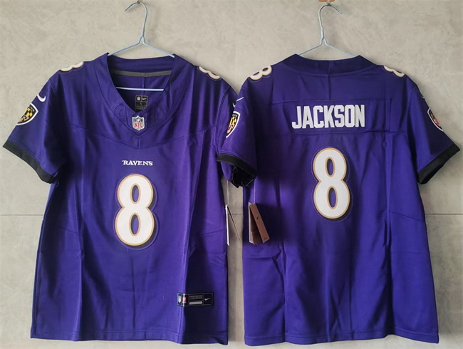 Women Baltimore Ravens 8 Lamar Jackson Purple Vapor Football Jersey