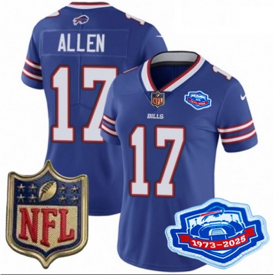 Home>NFL>Buffalo Bills>Women>Women Buffalo Bills 17 Josh Allen Blue 2025 F U S E Farewell Season Gold Shield Patch Stitched Football Jersey