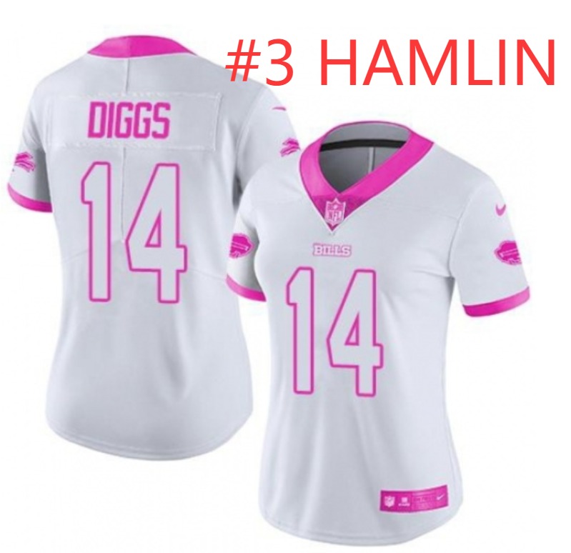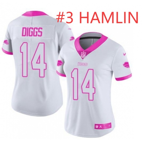 Women Buffalo Bills HAMLIN #3 White Pink Color Rush Fashion NFL Nike Limited Jersey