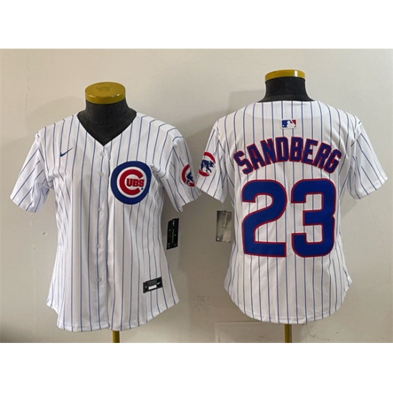 Home>MLB>Chicago Cubs>Women>Women Chicago Cubs 23 Ryne Sandberg White Home Limited Stitched Jersey