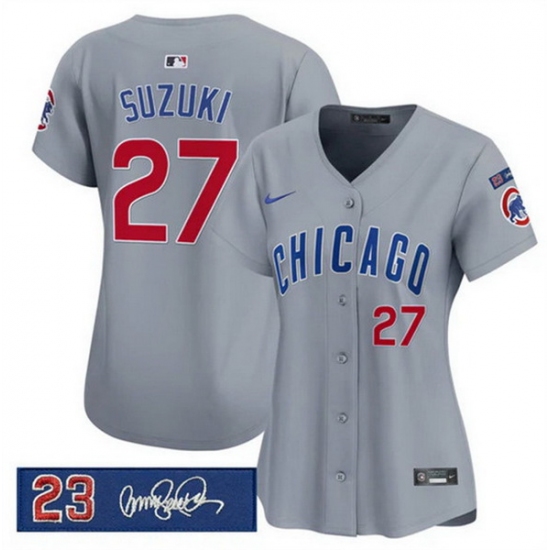 Women Chicago Cubs 27 Seiya Suzuki Gray Ryne Sandberg Tribute Vapor Limited V3 Stitched Baseball Jersey