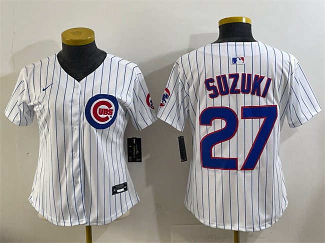 Home>MLB>Chicago Cubs>Women>Women Chicago Cubs 27 Seiya Suzuki White Home Limited Stitched Baseball Jersey