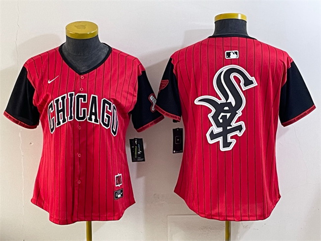 Home>MLB>Chicago White Sox>Women>Women Chicago White Sox Team Big Logo Red Black 2025 City Connect Limited Stitched Baseball Jersey 001