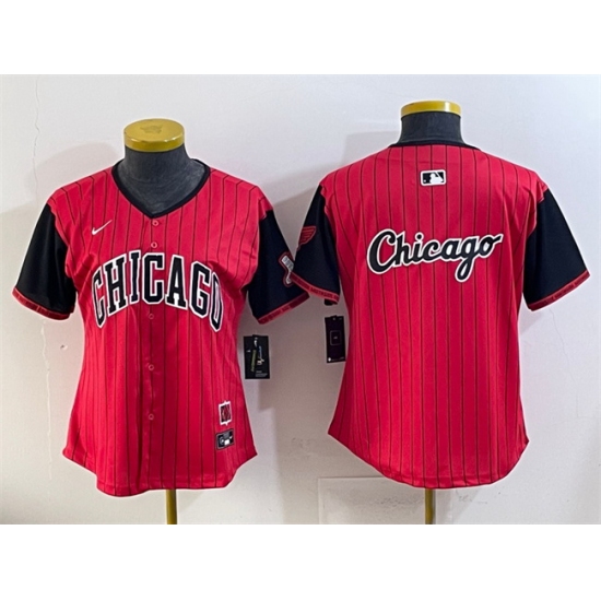 Home>MLB>Chicago White Sox>Women>Women Chicago White Sox Team Big Logo Red Black 2025 City Connect Limited Stitched Baseball Jersey 002