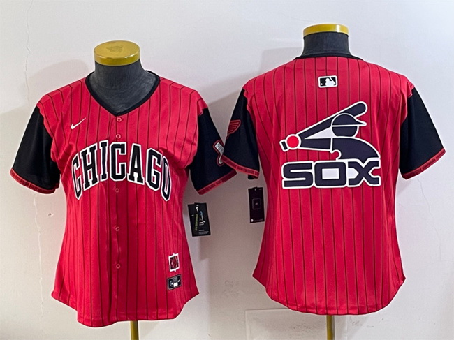 Home>MLB>Chicago White Sox>Women>Women Chicago White Sox Team Big Logo Red Black 2025 City Connect Limited Stitched Baseball Jersey 003