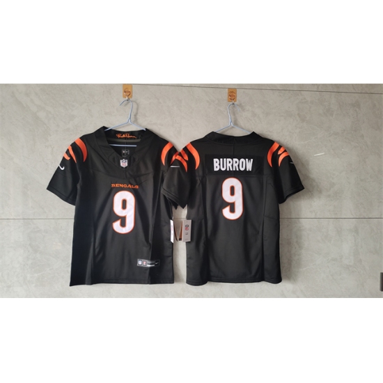 Women Cincinnati Bengals 9 Joe Burrow Black F U S E Stitched Vapor Football Jersey