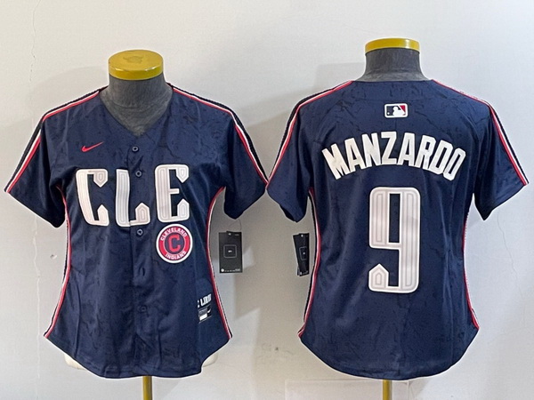 Home>MLB>Cleveland Guardians>Women>Women Cleveland Guardians 9 Kyle Manzardo Navy 2024 City Connect Stitched Baseball Jersey 5