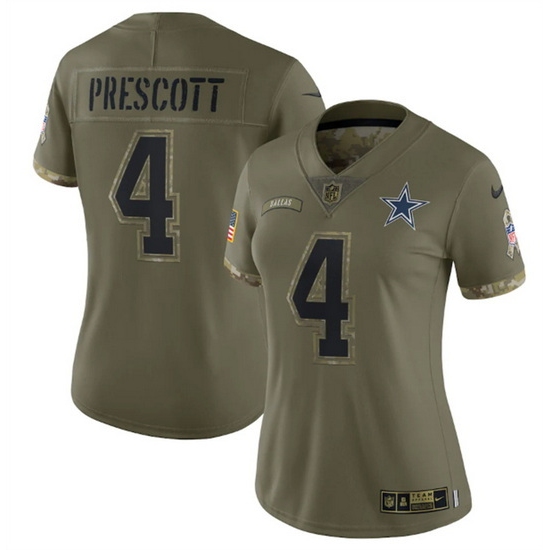 Women Dallas Cowboys 4 Dak Prescott Olive 2022 Salute To Service Limited Stitched Jersey