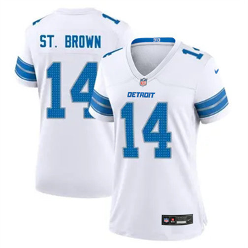 Home>NFL>Detroit Lions>Women>Women Detroit Lions 14 Amon Ra St Brown White 2024 F U S E Vapor Limited Stitched Jersey