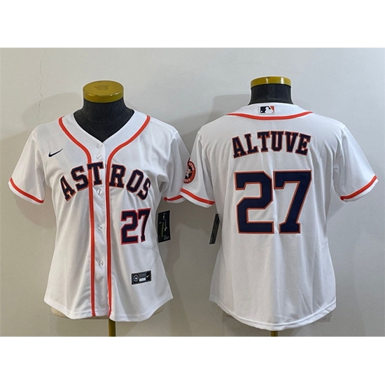 Women Houston Astros 27 Jose Altuve White With Patch Cool Base Stitched Baseball Jersey