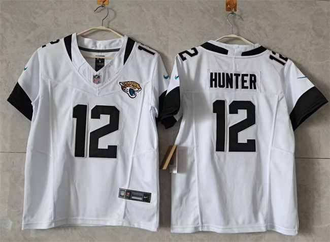Home>NFL>Jacksonville Jaguars>Women>Women Jacksonville Jaguars 12 Travis Hunter White 2024 F U S E Vapor Limited Stitched Football Jersey