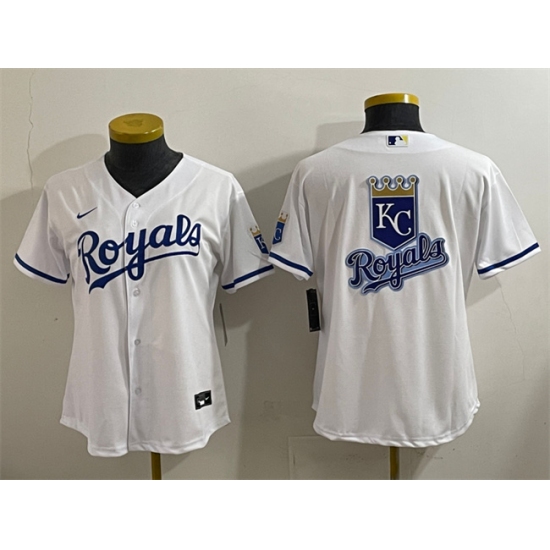 Women Kansas City Royals Team Big Logo White Cool Base Stitched Jersey 1