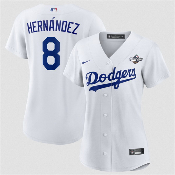 Home>MLB>Los Angeles Dodgers>Women>Women Los Angeles Dodgers 8 Enrique Hernandez White 2025 World Series Home Cool Base Limited Stitched Baseball Jersey