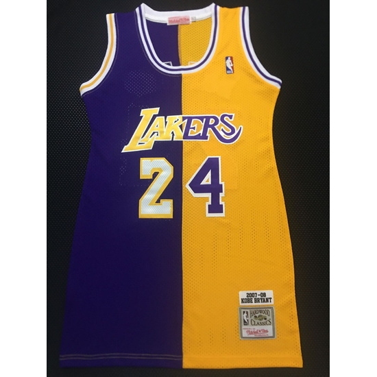 Home>NBA>NBA Women Dress Jersey>Women Los Angeles Lakers 24 Kobe Bryant Dress Stitched Jersey Yellow Purple Split