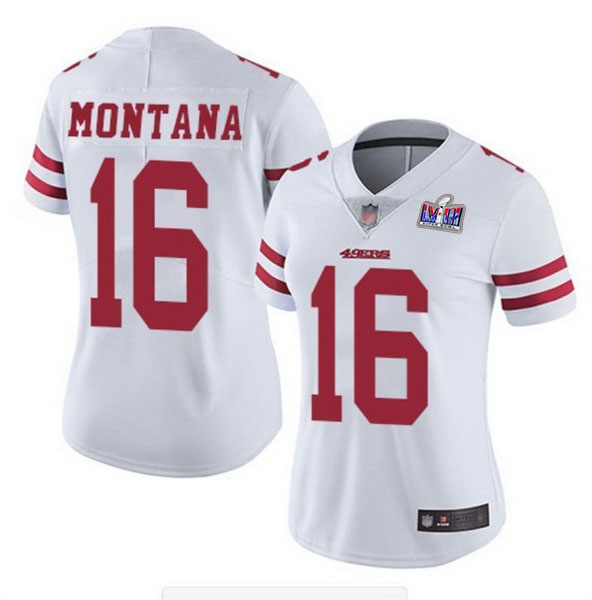 Home>NFL>2024 Super Bowl LVIII>San Francisco 49ers Women>Women NFL San Francisco 49ers 16 Joe Montana White Vapor Untouchable Limited Stitched 2024 Super Bowl LVIII Jersey