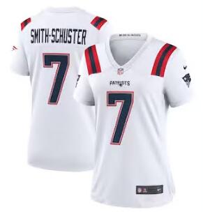 Home>NFL>New England Patriots>Women>Women New England Patriots 7 JuJu Smith Schuster White Stitched Game Jersey