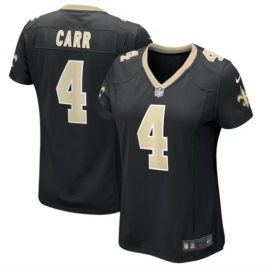 Home>NFL>New Orleans Saints>Women>Women New Orleans Saints 4 Derek Carr Black Stitched Game Jersey Run Small