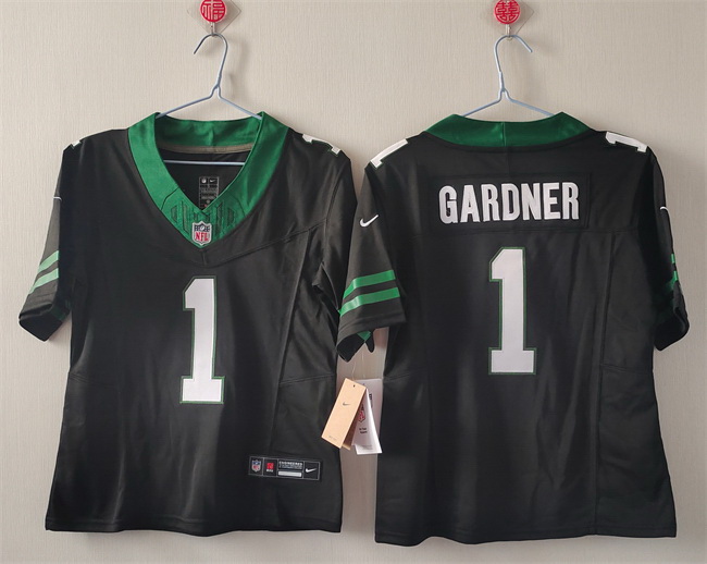 Home>NFL>New York Jets>Women>Women New York Jets 1 Ahmad Gardner Black F U S E Vapor Stitched Jersey