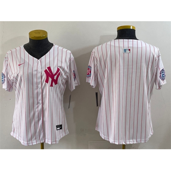 Women New York Yankees Blank White Pink Pinstripe Limited Stitched Baseball Jersey