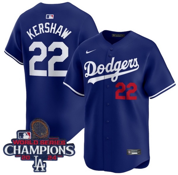 Women Nike Los Angeles Dodgers Clayton Kershaw #22 Blue Flex Base 2024 World Series Champions Stitched MLB Jersey