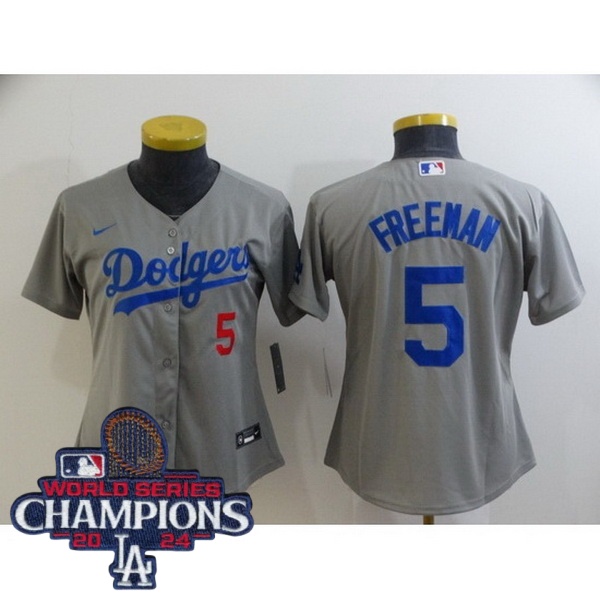 Home>MLB>2024 World Series Champions>Women>Women Nike Los Angeles Dodgers Freddie Freeman #5 Gray Flex Base 2024 World Series Champions Stitched MLB Jersey