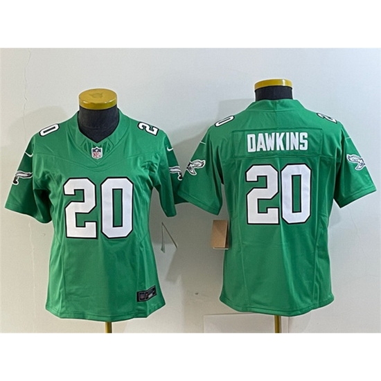 Women Philadelphia Eagles 20 Brian Dawkins Green 2023 F U S E Stitched Football Jersey Run Small