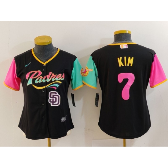 Home>MLB>San Diego Padres>Women>Women San Diego Padres 7 Ha Seong Kim Black City Connect Stitched Baseball Jersey 3