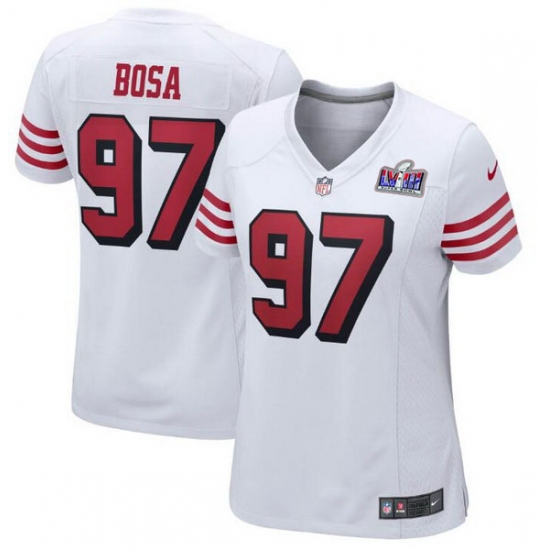 Home>NFL>2024 Super Bowl LVIII>San Francisco 49ers Women>Women San Francisco 49ers 97 Nick Bosa White Throwback 2023 F U S E Vapor Untouchable Limited Stitched Football 2024 Super Bowl LVIII Jersey