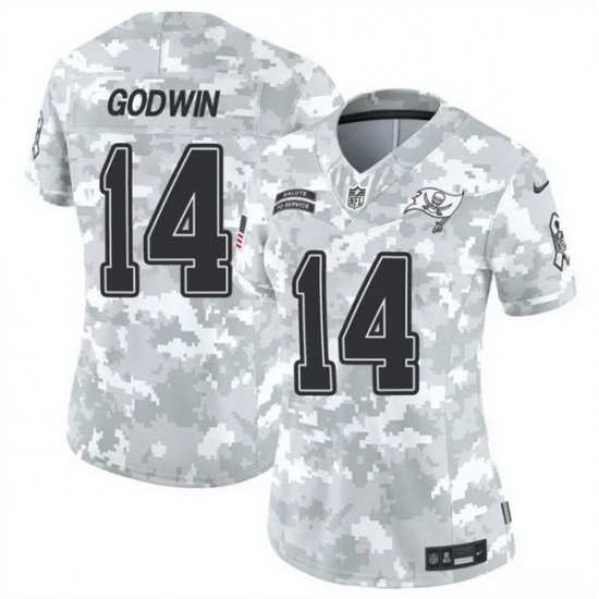 Home>NFL>Tampa Bay Buccaneers>Women>Women Tampa Bay Buccaneers 14 Chris Godwin 2024 F U S E Arctic Camo Salute To Service Limited Stitched Football Jersey