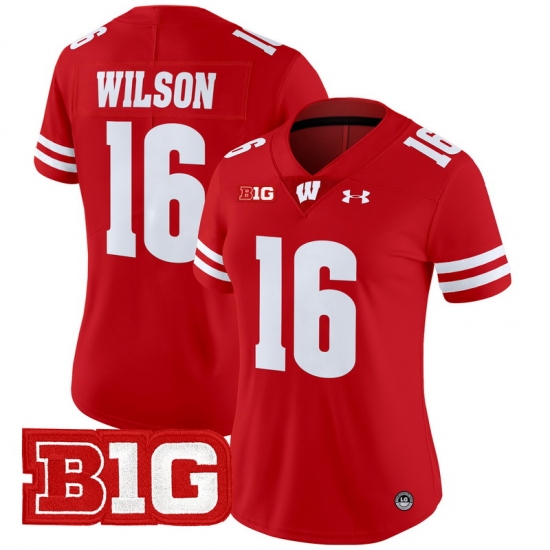 Women Wisconsin Badgers 16 Russell Wilson Red 2024 Vapor Limited Jersey All Stitched