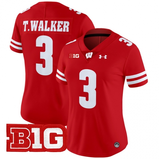 Women Wisconsin Badgers 3 Tawee Walker Red 2024 Vapor Limited Jersey All Stitched
