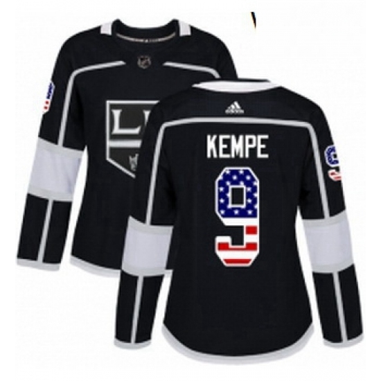 Home>NHL>Los Angeles Kings>Women>Womens Adidas Los Angeles Kings 9 Adrian Kempe Authentic Black USA Flag Fashion NHL Jersey