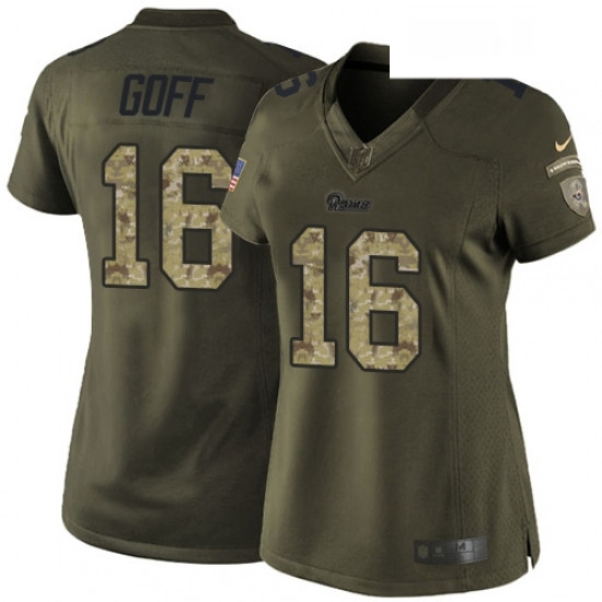 Home>NFL>Los Angeles Rams>Women>Womens Nike Los Angeles Rams 16 Jared Goff Elite Green Salute to Service NFL Jersey