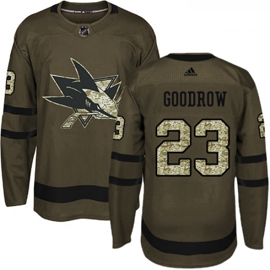 Home>NHL>San Jose Sharks>Youth>Youth Adidas San Jose Sharks 23 Barclay Goodrow Premier Green Salute to Service NHL Jersey