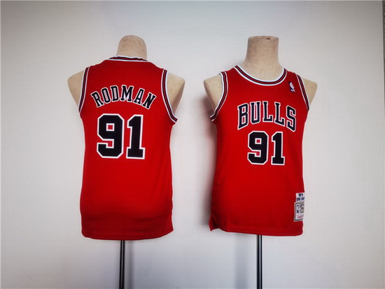Youth Chicago Bulls 91 Dennis Rodman Red Stitched Basketball Jersey