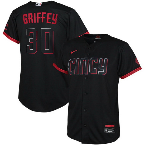 Youth Cincinnati Reds 30 Ken Griffey Jr Black 2023 City Connect Stitched Baseball Jersey