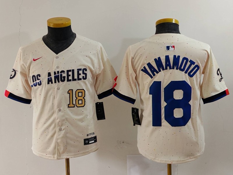 Youth Los Angeles Dodgers 18 Yoshinobu Yamamoto Cream Stitched Baseball Jersey 5