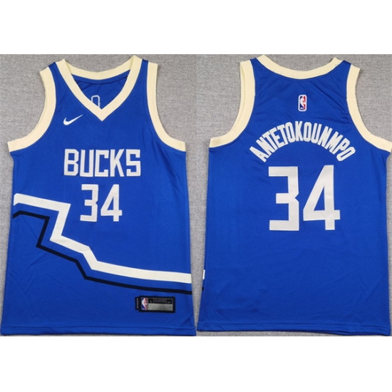 Youth Milwaukee Bucks 34 Giannis Antetokounmpo Blue City Edition Stitched Basketball Jersey
