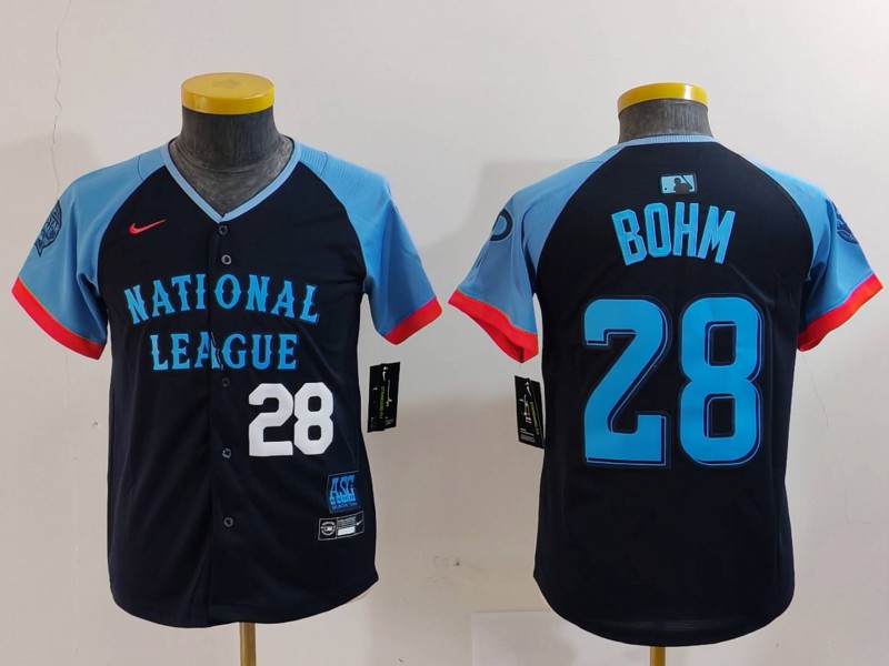 Home>MLB>2024 All Star>Youth>Youth National League 28 Alec Bohm Navy 2024 All Star Limited Stitched Baseball Jersey 3