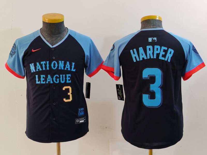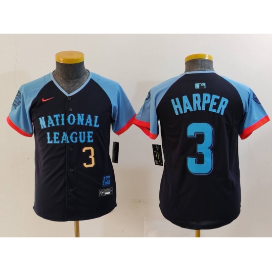 Home>MLB>2024 All Star>Youth>Youth National League 3 Bryce Harper Navy 2024 All Star Limited Stitched Baseball Jersey 3