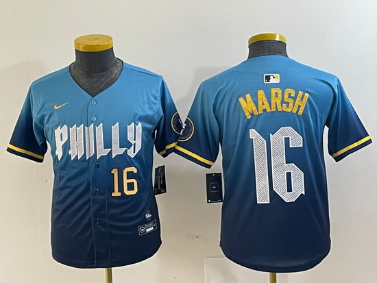 Youth Philadelphia Phillies 16 Brandon Marsh Blue 2024 City Connect Limited Stitched Jersey 4