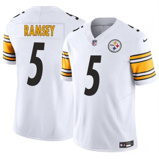 Home>NFL>Pittsburgh Steelers>Youth>Youth Pittsburgh Steelers 5 Jalen Ramsey White 2023 F U S E Vapor Untouchable Limited Stitched Football Jersey