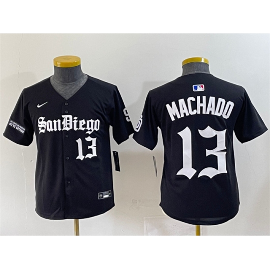 Home>MLB>San Diego Padres>Youth>Youth San Diego Padres 13 Manny Machado Black Gothic Edition Vapor Limited Stitched Baseball Jersey