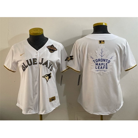 Home>MLB>Toronto Blue Jays>Youth>Youth Toronto Blue Jays 26 Leafs White Gold 2025 American League Champions With White Leafs Logo Limited Stitched Baseball Jersey