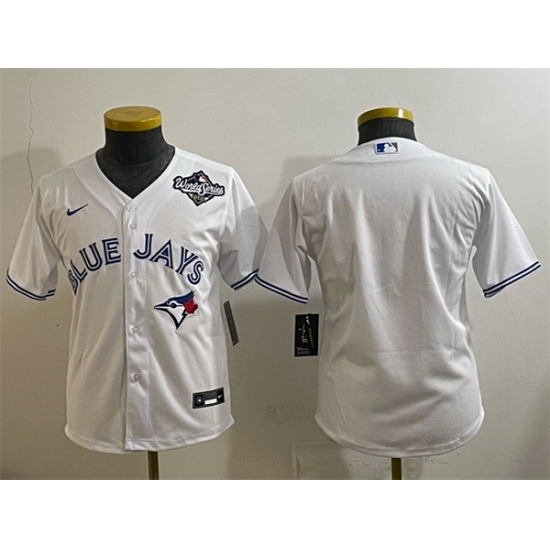 Home>MLB>Toronto Blue Jays>Youth>Youth Toronto Blue Jays Blank White 2025 World Series Cool Base Stitched Baseball Jersey