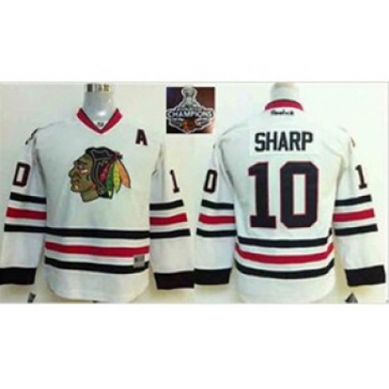 youth nhl jerseys chicago blackhawks #10 sharp white[2015 Stanley cup champions][patch A]