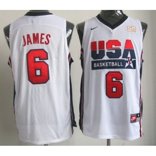 1992 Olympics Team USA 6 LeBron James White Swingman Jersey