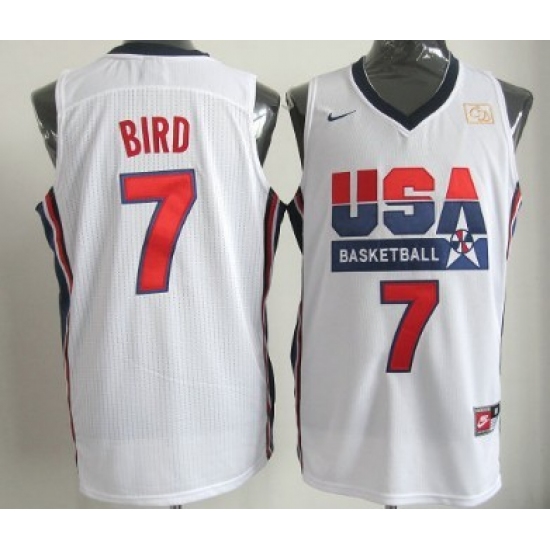 1992 Olympics Team USA 7 Larry Bird White Swingman Jersey